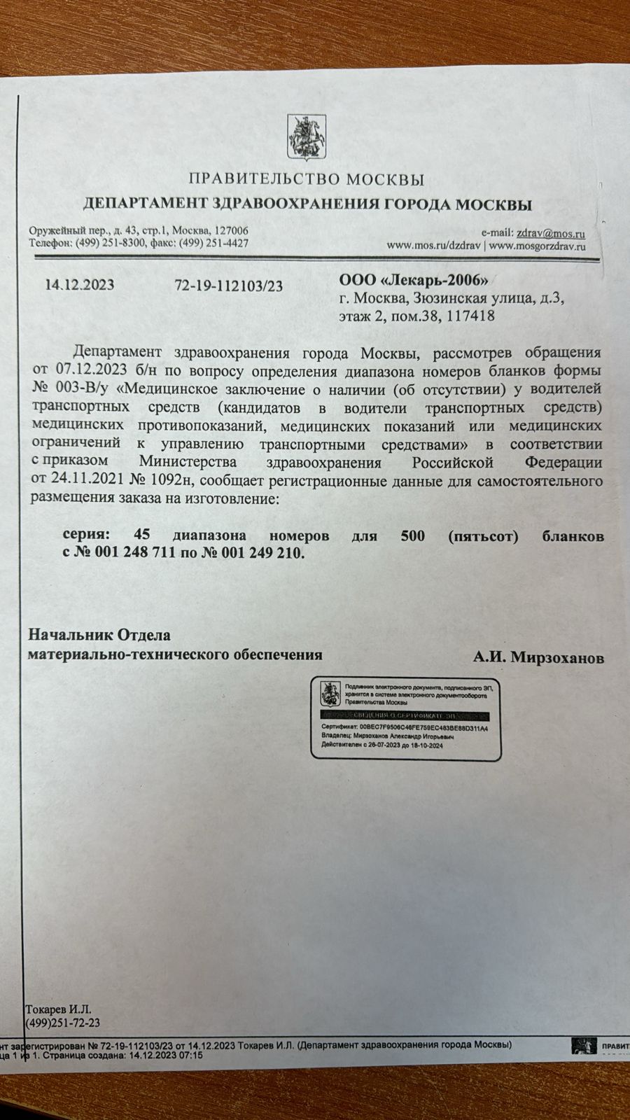 В связи с участившимися случаями появления "левых" справок Депздрав прислал список некоторых медкомиссий, чьи справки, выданные в 2024 году, действительны.